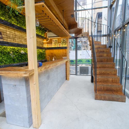 カウンター向い側の階段を上ると二階席もございます♪おしゃれな店内でゆっくりお過ごしいただけます◎