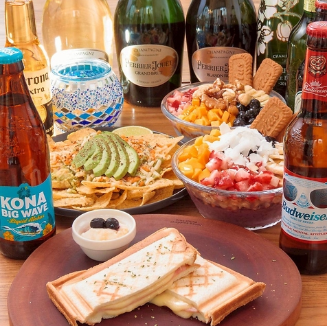 当店では、多彩なお酒と相性抜群のおつまみも豊富にご用意しています。香り高いオリーブや深いコクのナッツ、当店自慢のタコスとシャンパンとの組み合わせは、華やかな泡が素材の旨みを引き立てます。寒い季節には、身体をやさしく温めるホットワインもご提供。大人の時間をゆったりと楽しめる贅沢なひとときをお届けします
